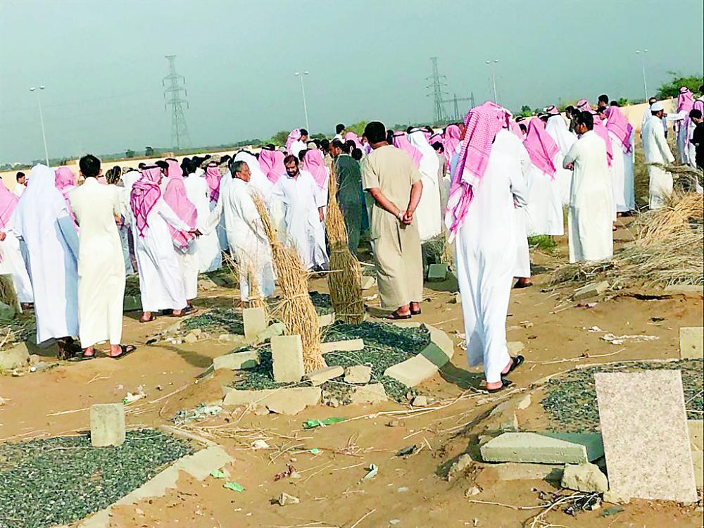 مشيعو الفقيدة في المقبرة. (عكاظ)