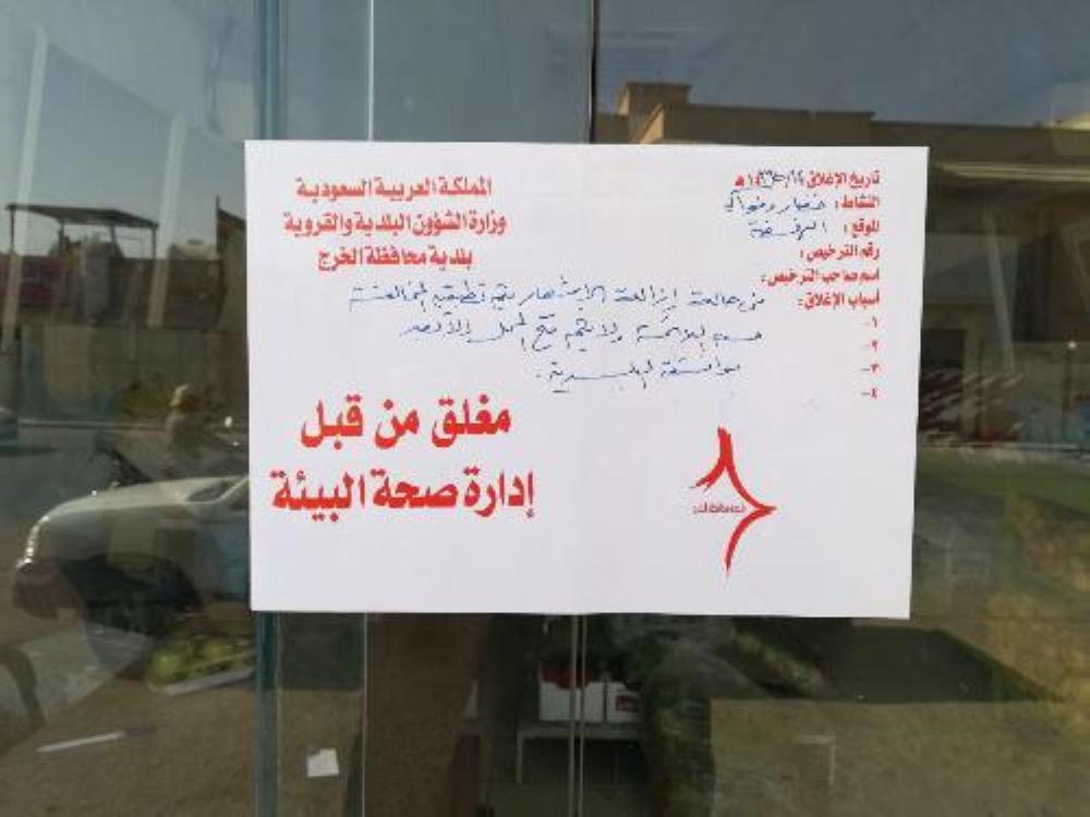 «بلدية الخرج»: إغلاق مطاعم ومحلات لمخالفات صحية