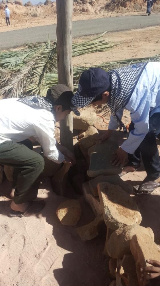 شيد 18 طالباً كشفياً ومعلماً بمدرسة عبدالله بن عمر التابعة لتعليم النماص مصلى بالحجر لخدمة المناطق السياحية.