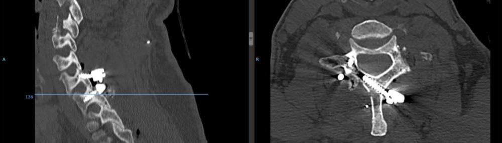 وأوضحت المدينة أن المريض كان يشكو من آلام في الرقبة مصحوبة بخدران وتنميل وضعف في عضلات اليد اليسرى، مشيرة إلى أن الفريق الطبي بقيادة استشاري العمود الفقري الدكتور معتصم عبيدات، أجرى عملية جراحية لإرجاع الانزلاق في الفقرات وتثبيت الفقرتين من الخلف باستخدام البراغي والقضبان المعدنية وهي تقنية حديثة ومميزة بتثبيت الفقرة السابعة، حيث تم وضع أحد البراغي في الصفيحة العظمية.