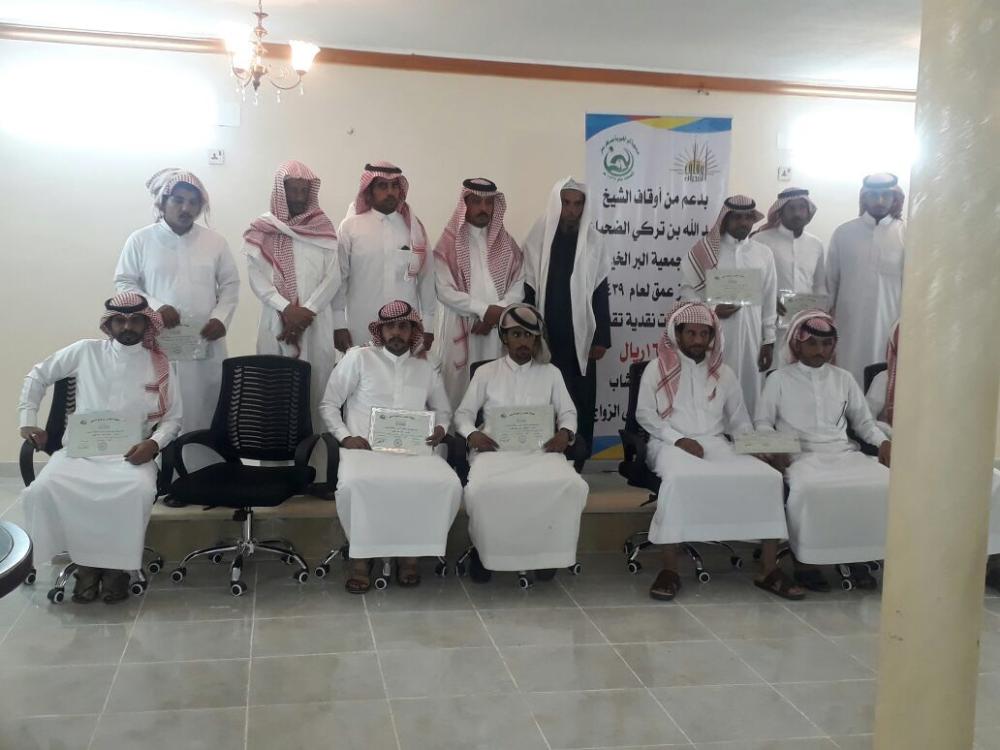 وزّعت جمعية بر عمق الخيرية، إعانات نقدية بمبلغ 160 الف ريال بدعم من أوقاف عبدالله بن تركي الضحيان للشباب المقبلين على الزواج محدودي الدخل والمستفيدين من الجمعية أستفاد منها 16 شاب، وذلك بحضور رئيس مركز عمق عطاالله صبيان الجهني، وعقدت دورة لهم بجمعية سكن.