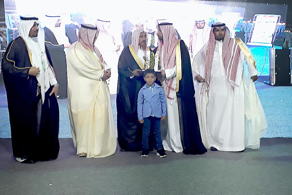 تكريم أحد أبناء الشهداء في الاحتفال. (عكاظ)