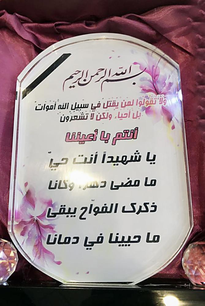 درع تكريمية لأسرة أحد الشهداء. (عكاظ)
