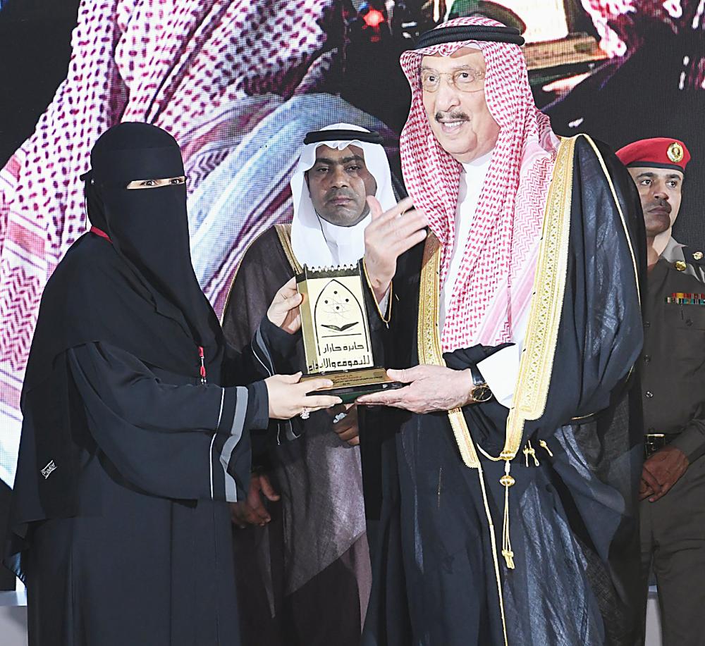 الأمير محمد بن ناصر مكرما إحدى المتميزات. (تصوير: محمد القيسي)