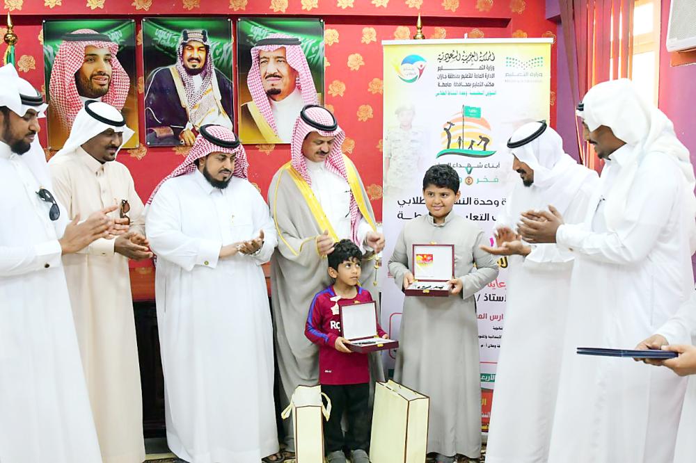 السبيعي والصميلي يكرمان أبناء الشهداء. (عكاظ)