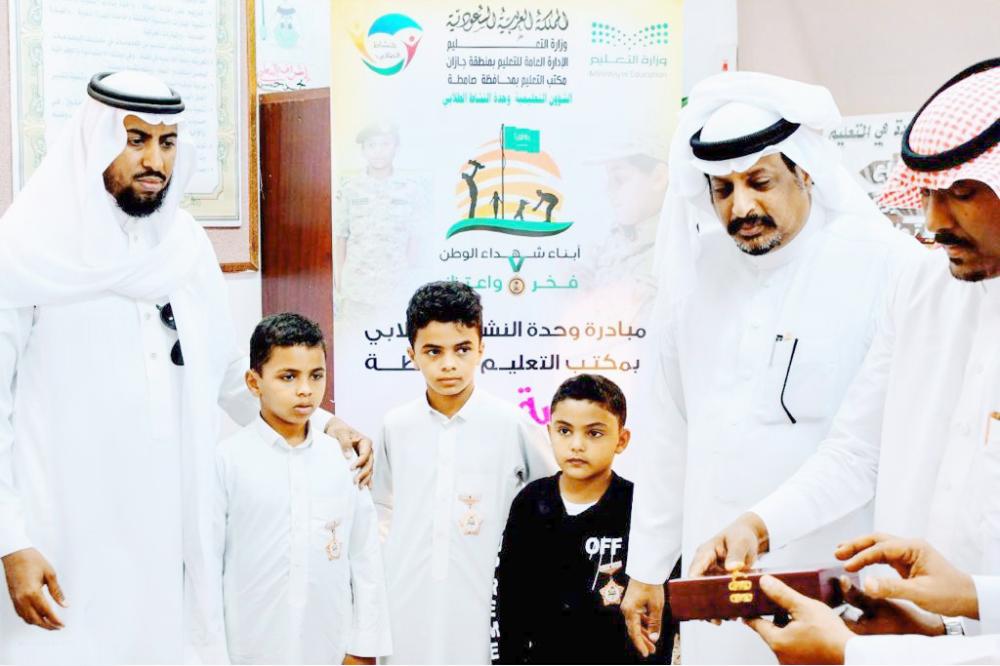 قائد المدرسة يكرم أبناء الشهداء. (عكاظ)