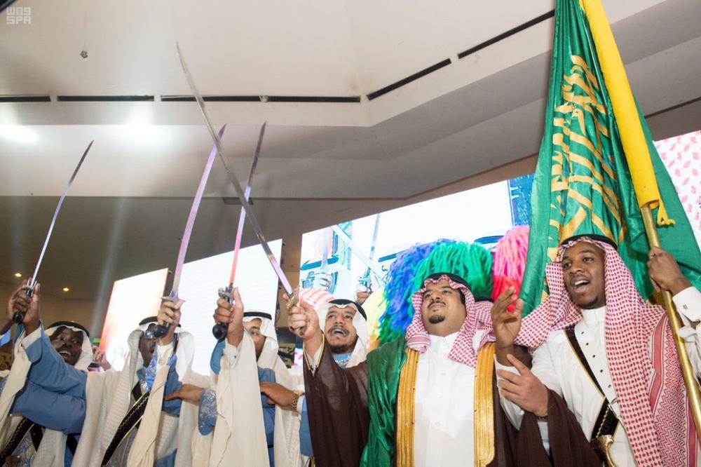 ثم شاهد الجميع عرضاً مرئياً عن «حركية» وأوبريتاً إنشادياً، ثم كرم نائب أمير منطقة الرياض الرعاة والداعمين وشارك العرسان العرضة النجدية.