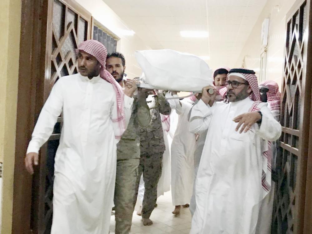 أثناء تشييع جثمان الشهيد الشهري.(عكاظ)