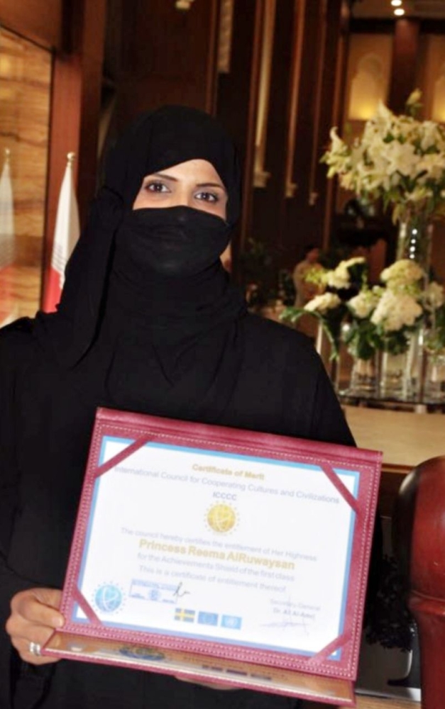 كرم المجلس العالمي للتعاون والحضارات والثقافات في الاتحاد الأوروبي ريما الرويسان بوسام وتاج الريادة العالمي ودرع الإنجاز وشهادة الاستحقاق، كأول سعودية تحظى بتكريم الريادة العالمي.