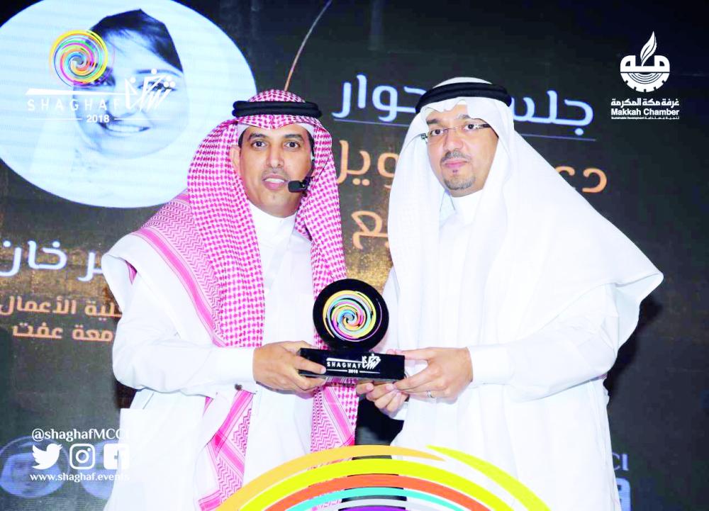 الذبياني متسلما درع تكريم لمشاركته في الملتقى.