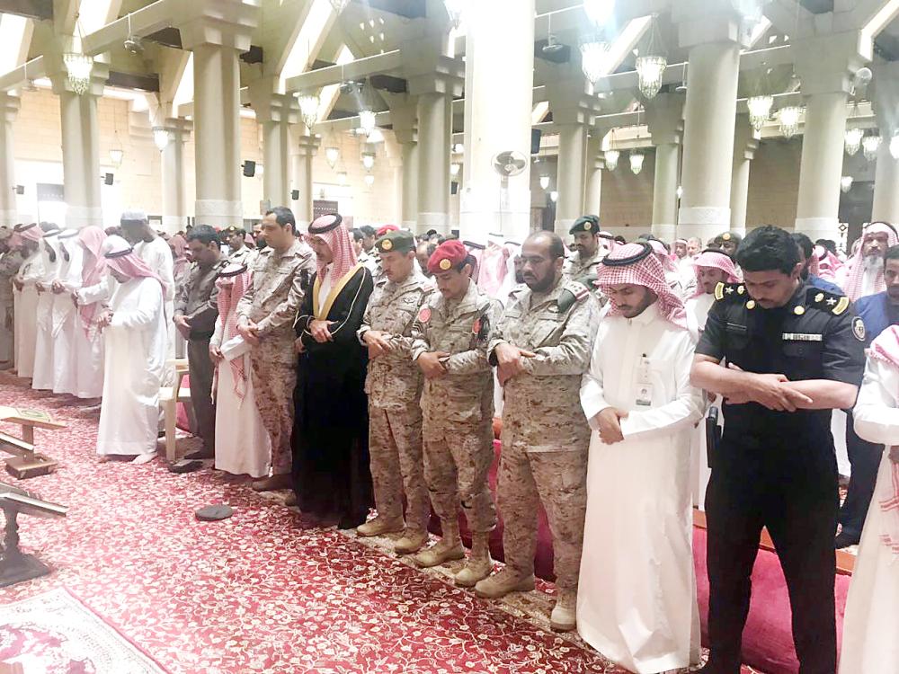 أداء الصلاة على الشهيد المضياني في الخرج. (عكاظ)