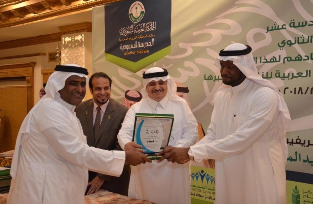 من جهته، نوه سفير خادم الحرمين الشريفين لدى جمهورية باكستان الإسلامية بالجهود الكبيرة التي بذلتها إدارة المدرسة السعودية بإسلام آباد في تنفيذ العديد من الأنشطة والبرامج الصفية واللا صفية الداخلية والخارجية، مثمناً الدور الكبير لأولياء الأمور في توفير المناخ الملائم والمحفز لأبنائهم على النجاح.
