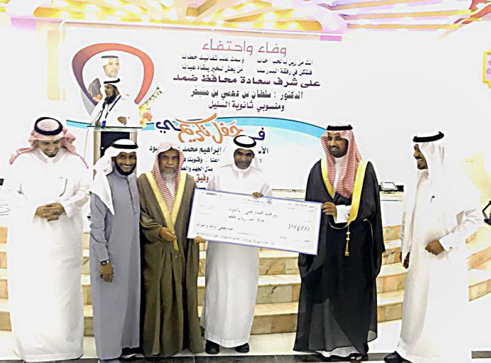 كرم محافظ ضمد الدكتور سلطان بن عجمي بن منيخر التربوي إبراهيم محمد الأسود معافا في الحفلة التي نظمتها ثانوية السليل، بحضور عدد من الأعيان والمسؤولين. وتخلل الاحتفال فقرات متنوعة ورسمت لوحة جميلة من لوحات الوداع وموقفا رائعاً في الوفاء، وألقى قائد المدرسة حسن عيساوي كلمة ذكر فيها المكانة العالية للمحتفى به وما بذله من جهد كبير في مجال التعليم بعد ذلك تم عرض فيلم وثائقي عن المحتفى به، في نهاية الاحتفال قدم محافظ ضمد بن منيخرالدروع التذكارية والهدايا للتربوي المتقاعد.