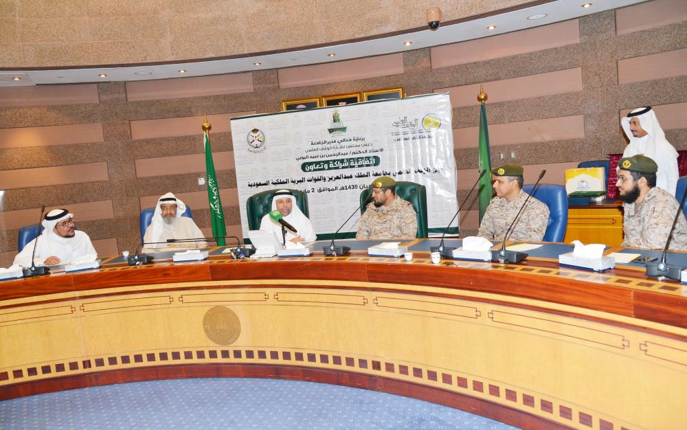 منسوبو الجامعة والقوات البرية خلال توقيع الاتفاقية.