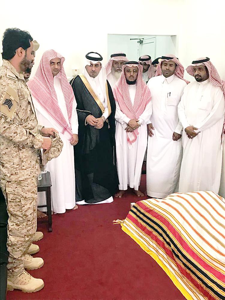 وأدت جموع غفيرة من الأهالي والأعيان والمسؤولين الصلاة على الشهيد في الجامع الكبير، يتقدمهم وكيل محافظة محايل المكلف يحيى بن محمد العاصمي وعدد من مديري الإدارات الحكومية والأمنية والقوات المسلحه وأقارب الشهيد وجموع المصلين.