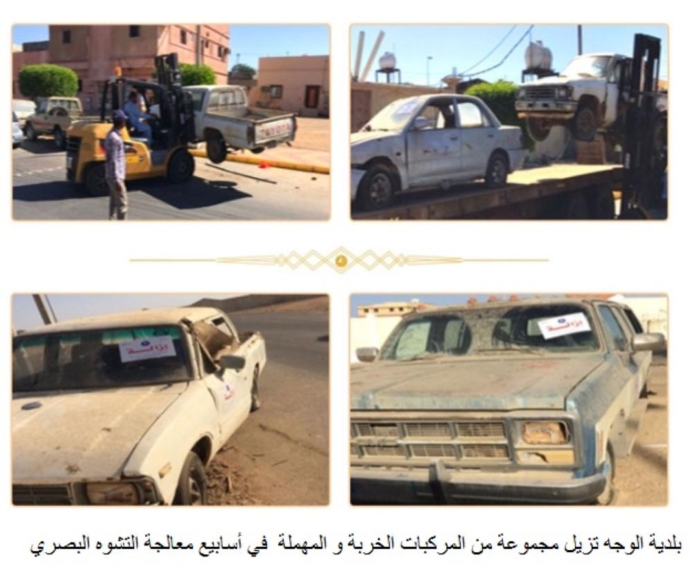 واصلت بلدية محافظة الوجه أعمالها التجميلية لمعالجة التشوه البصري بشعار «كذا أحلى»، تفعيلاً لمبادرة وزارة الشؤون البلدية والقروية لإزالة مظاهر التلوث البصري والعمل على تحسين المشهد الحضري.