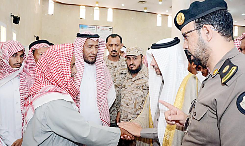تقدم وكيل محافظة محايل عسير المكلف يحيى بن محمد العاصمي المصلين في جامع الأميرة العنود، على الشهيد العريف إبراهيم بن مرعي علي عسيري، الذي لقي ربه وهو يذود عن الدين والوطن في الحد الجنوبي. ونقل العاصمي تعازي القيادة لأسرة الشهيد، سائلاً الله تعالى أن يتقبله بواسع رحمته ومغفرته. وعبر ذوو الشهيد عسيري عن شكرهم وتقديرهم للقيادة على الاهتمام الدائم بأبنائها في كل مكان، معربين عن فخرهم واعتزازهم بالشهيد.