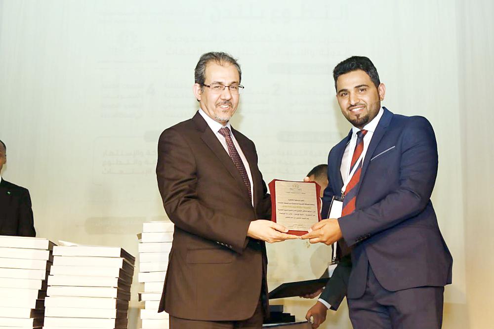 الزميل النجراني يتسلم درعاً تكريمية. (عكاظ)