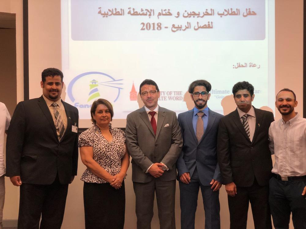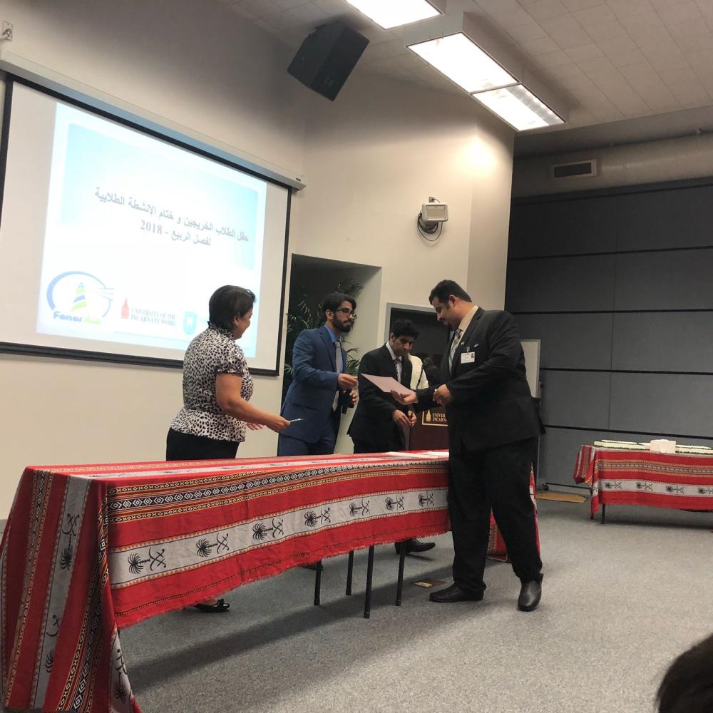 أقام النادي السعودي بجامعة انكارنت وورد بمدينة سان انتونيو - تكساس، احتفالاً لتكريم الطلاب الخريجين، بالتعاون مع منظمة فنار التابعة للشؤون الثقافية والاجتماعية بالملحقية الثقافية بالولايات المتحدة الأمريكية، وعيادة الدكتور خالد طربوش.