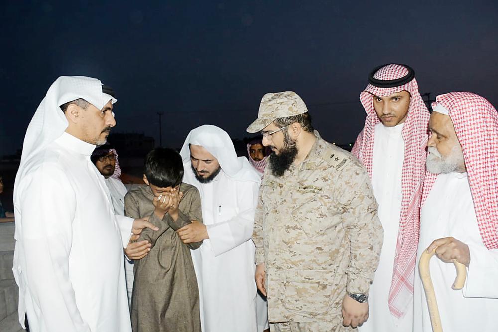 مواسون يقدمون العزاء لابن الشهيد. (عكاظ)