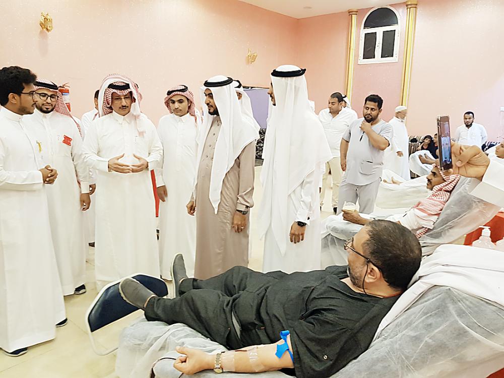 المشاركون في حملة التبرع بالدم. (عكاظ)