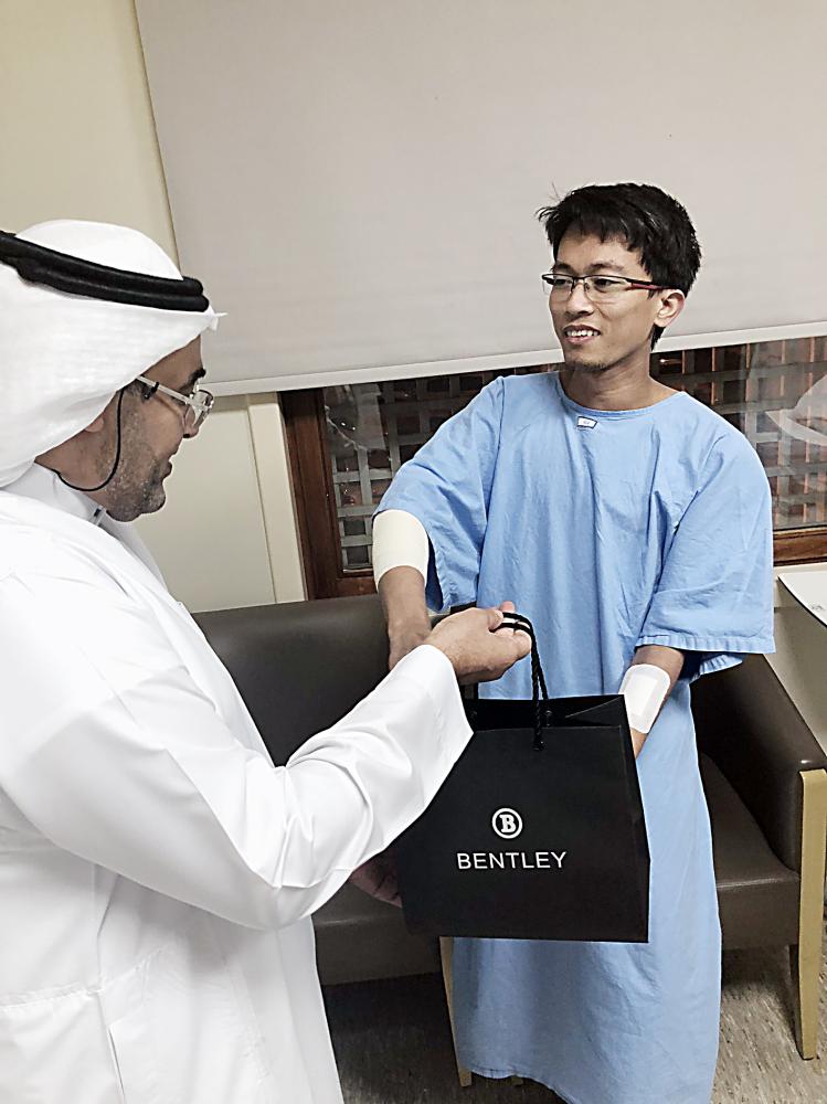 كرم أمير منطقة المدينة المنورة الأمير فيصل بن سلمان، الممرض الفلبيني رونالدو، الذي تعرض لاعتداء في أول ليالي رمضان الجاري، من مواطن ثلاثيني. وسلم مدير عام الشؤون الصحية بمنطقة المدينة المنورة الدكتور عبد الحميد الصبحي، هدية أمير المدينة المنورة، للممرض الفلبيني.