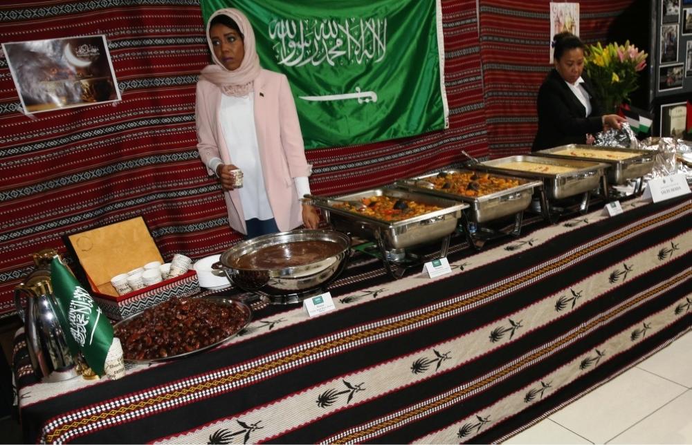 وتضمن الجناح الخاص بسفارة المملكة توزيع مصاحف وكتب إسلامية مقدمة من مكتب الدعوة في السفارة، إضافة الى تقديم التمور والأطباق والمأكولات السعودية التقليدية التي لاقت استحساناً وصدى واسعاً لدى الجميع.