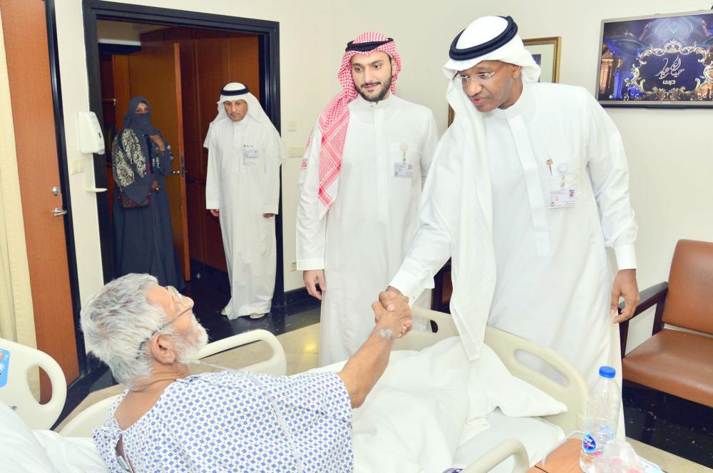 ملاوي مطمئنا على أحد المرضى. (عكاظ)