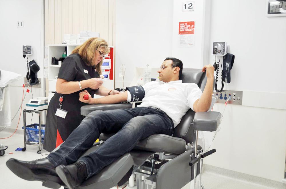 خداوردي مشاركا في حملة التبرع بالدم. (عكاظ)