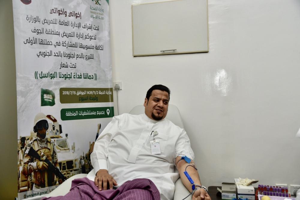 نظمت المديرية العامة للشؤون الصحية بمنطقة الجوف، ممثلة بإدارة التمريض، حملة التبرع بالدم لموظفيها، بإشراف الإدارة العامة للتمريض بوزارة الصحة تحت شعار «دماؤنا فداءٌ لجنودنا البواسل».