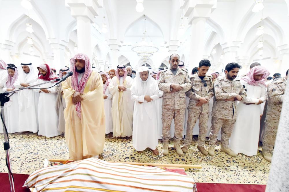 أداء الصلاة على الشهيد المقري. (عكاظ)