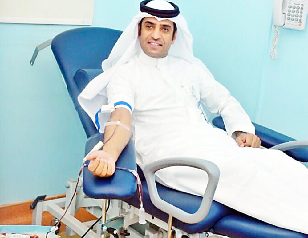 الصافي أثناء تبرعه بالدم. (عكاظ)