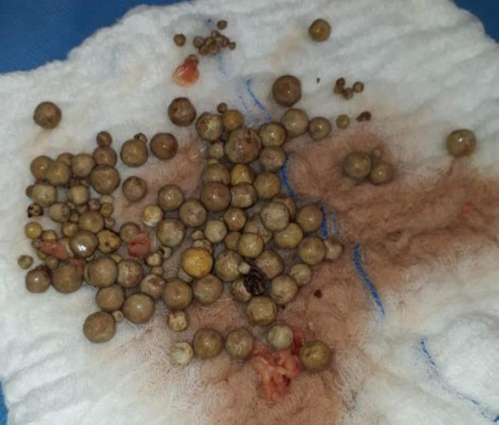 وأوضحت صحة القريات أنه تم إجراء الفحوصات والتحاليل وتبين وجود حصى تغلق المثانة يقدر عددها 87 حصوة تقريباً، حيث تقرر من الطبيب المعالج (استشاري المسالك البولية) إجراء عملية جراحية لاستخراج الحصى، وبفضل الله تكللت بالنجاح.