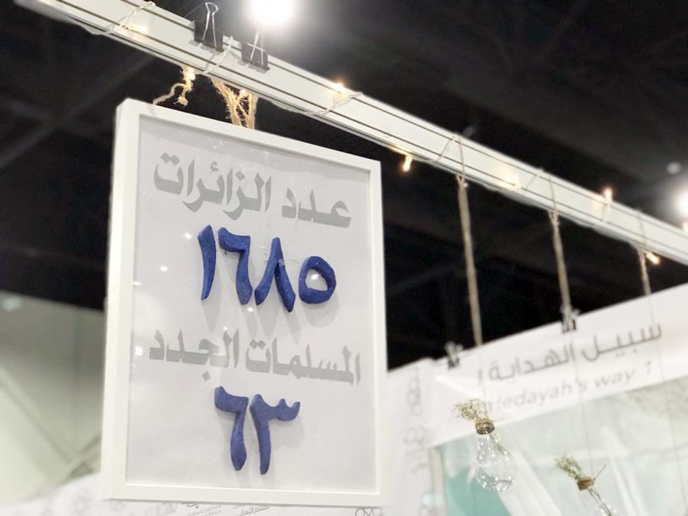 لافتة توضح عدد الزوار والمسلمات الجدد. (عكاظ)