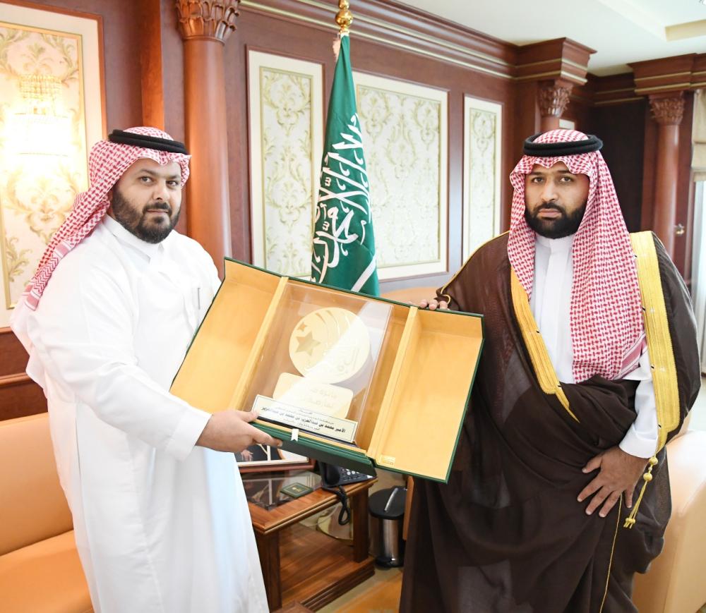 أمير جازان بالنيابة يستقبل محافظ العارضة وأعضاء برنامج المدينة الصحية وجائزة التميز