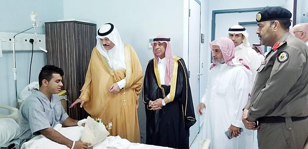 البازعي مطمئنا على أحد المرضى. (عكاظ)