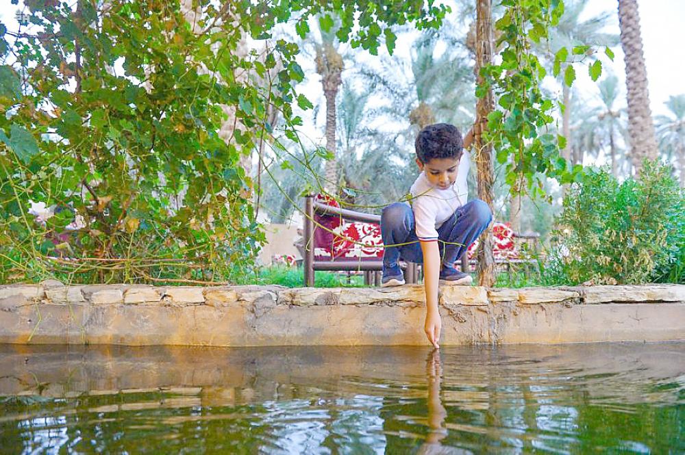 طفل في مزرعة التمور بعنيزة. (عكاظ)