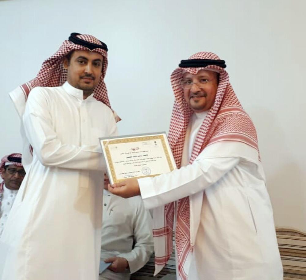كرم مدير الإعلام الخارجي بمنطقة مكة المكرمة عبدالرحمن نيازي، وسمي محمد العتيبي، من منسوبي الشؤون الثقافية، خلال حفلة تكريم اللجان التي شاركت بالعمل في موسم حج هذا العام.