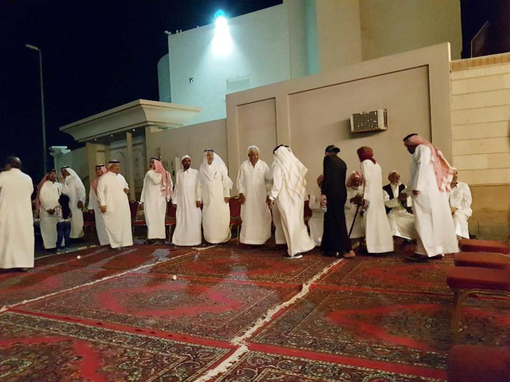 ذوو الفقيدة يستقبلون المعزين أمس. (عكاظ)