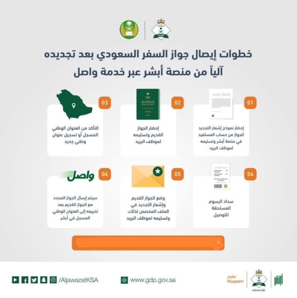 دشن اليوم (الأحد)، مدير عام البريد بمنطقة الجوف بدر بن مشعل الشعلان، ومدير جوازات منطقة الجوف العميد محمد بن مقرن الزامل، خدمة إيصال الجواز السعودي بعد تجديده آلياً من منصة «أبشر» عبر خدمة «واصل»، من خلال مكاتب البريد بمنطقة الجوف والمحافظات التابعة لها.