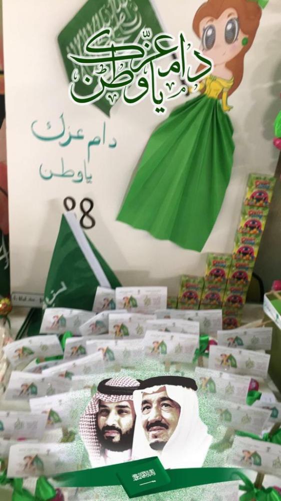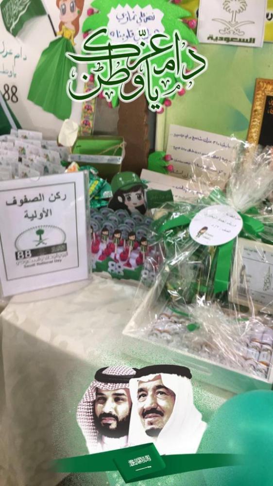 واكتست مرافق المدرسة وأزياء الطالبات باللونين الأخضر والأبيض، كما تضمن الحفل تقديم الطالبات للعديد من الفقرات الإنشادية والأعمال الفنية والإلقاء، وغيرها من الأنشطة ذات الطابع الوطني التي تهدف إلى ترسيخ حب الوطن في نفوسهن وتعريفهن بأهمية هذه المناسبة الوطنية السامية، والنهضة التي شهدها الوطن منذ توحيد المملكة على يد الملك عبدالعزيز ـ طيب الله ثراه ـ مرورا بعهود أبنائه البررة ووصولاً للعهد الزاهر تحت قيادة ملك الحزم والعزم سلمان بن عبدالعزيز وولي عهده الأمير محمد بن سلمان، والذي شهد نقلة نوعية في شتى المجالات لما فيه استقرار الوطن ورخاء شعبه.