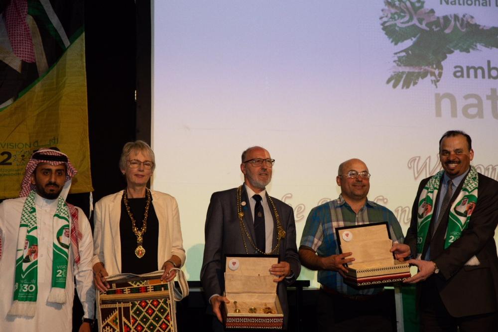وألقى عمدة نيوكاسل كلمة عبر فيها عن مدى سعادته بدعوة النادي السعودي له وما لقيه من حفاوة وترحيب.