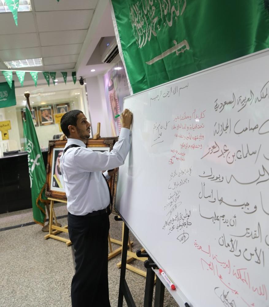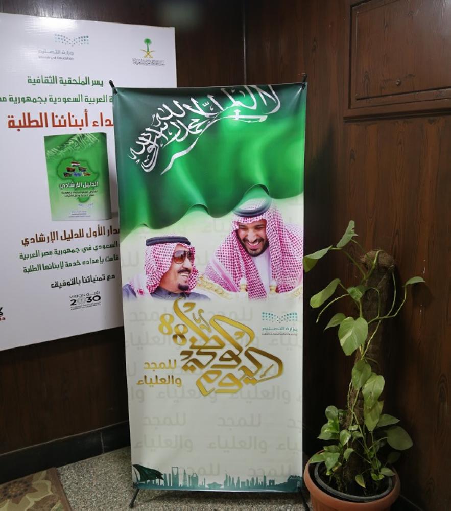 وأكتست جدران وممرات الملحقية باللون الأخضر ووُضِعت لوحة جدارية تُجسِّد مشاعر الطلبة السعوديين الدارسين في جمهورية مصر العربية وجميع المراجعين، بحيث يمكنهم تسجيل انطباعاتهم بهذا اليوم المبارك والتعبير عن اعتزازهم وحبهم لوطنهم المملكة العربية السعودية.