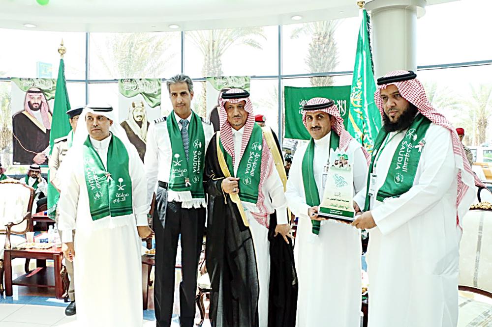 كرم محافظ بيشة محمد بن سعيد بن سبرة ومدير التعليم نايف الهاجري أبناء الشهداء والمعلمين المتوفين في الاحتفال الذي نظمته إدارة تعليم بيشة بمناسبة اليوم الوطني الـ88 للمملكة.