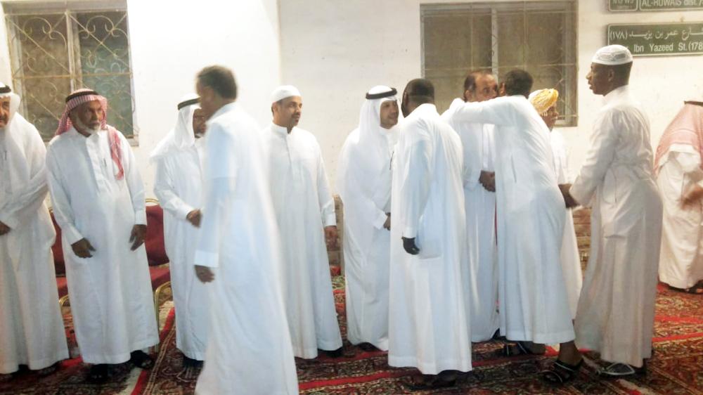 ذوو الفقيدة يستقبلون المعزين أمس. (عكاظ)