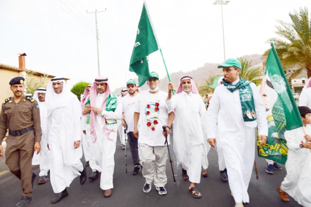 نظمت محافظة العلا مسيرة وطنية مشيا على الأقدام لمسافة تزيد على 5 كم تقريبا، بمناسبة ذكرى اليوم الوطني السعودي 88، بحضور ومشاركة المحافظ مبارك بن عطا الله المورقي، ومديري الإدارات الحكومية، والجهات ذات العلاقة منها التعليمية والأمنية والاجتماعية.