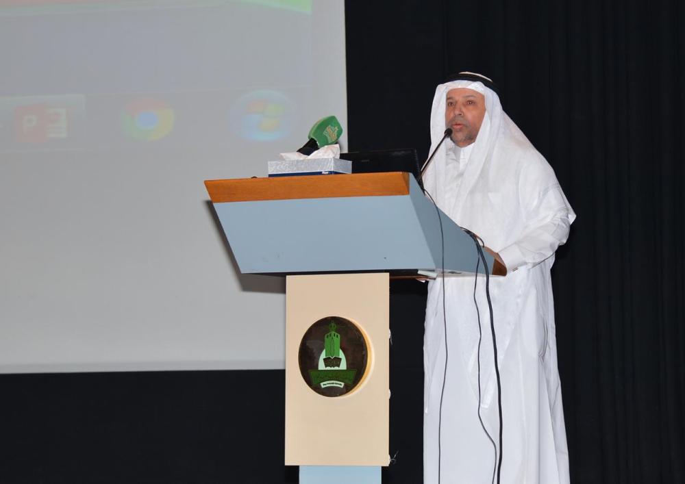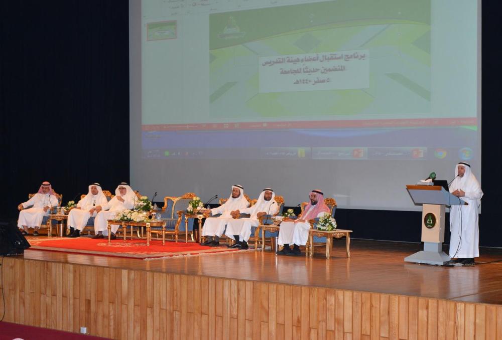 وبعد ذلك ألقى مدير الجامعة كلمة بهذه المناسبة رحب من خلالها بالمنضمين حديثًا لهيئة أعضاء التدريس، مؤكدًا على أن الجامعة دأبت على العمل التكاملي والتراكمي المبني على استراتيجية تتمشى مع رؤية المملكة 2030، كما تهتم الجامعة ومنذ إنشائها بأهم عنصر من عناصر تحقيق الأهداف التعليمية والبحثية وخدمة المجتمع ألا وهو عضو هيئة التدريس مما ساهم وبشكل كبير في تطور الجامعة وحصولها على التميز العلمي والبحثي على المستوى المحلي والدولي.