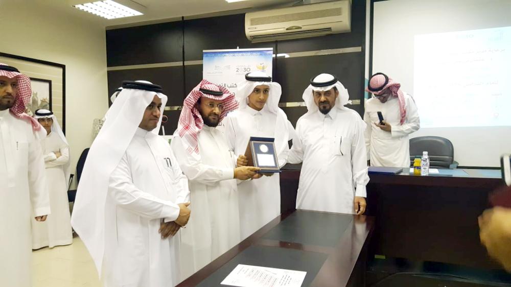 السهيمي مكرما أحد الطلاب. (عكاظ)
