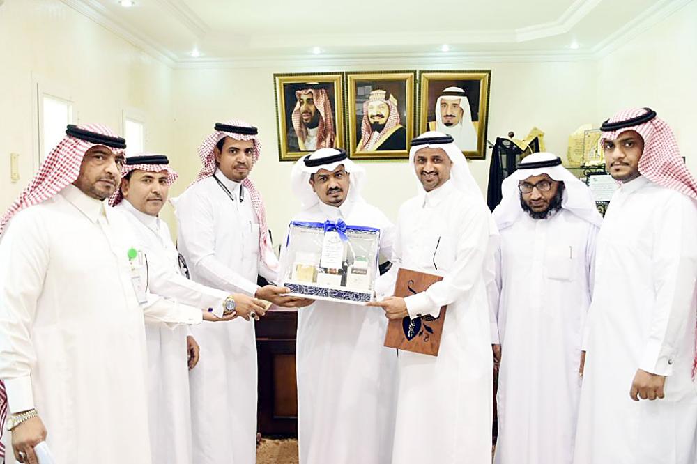 مشهور يتسلم هدية في حفلة التكريم. (عكاظ)