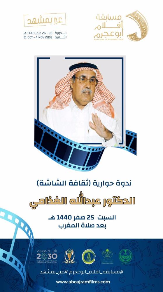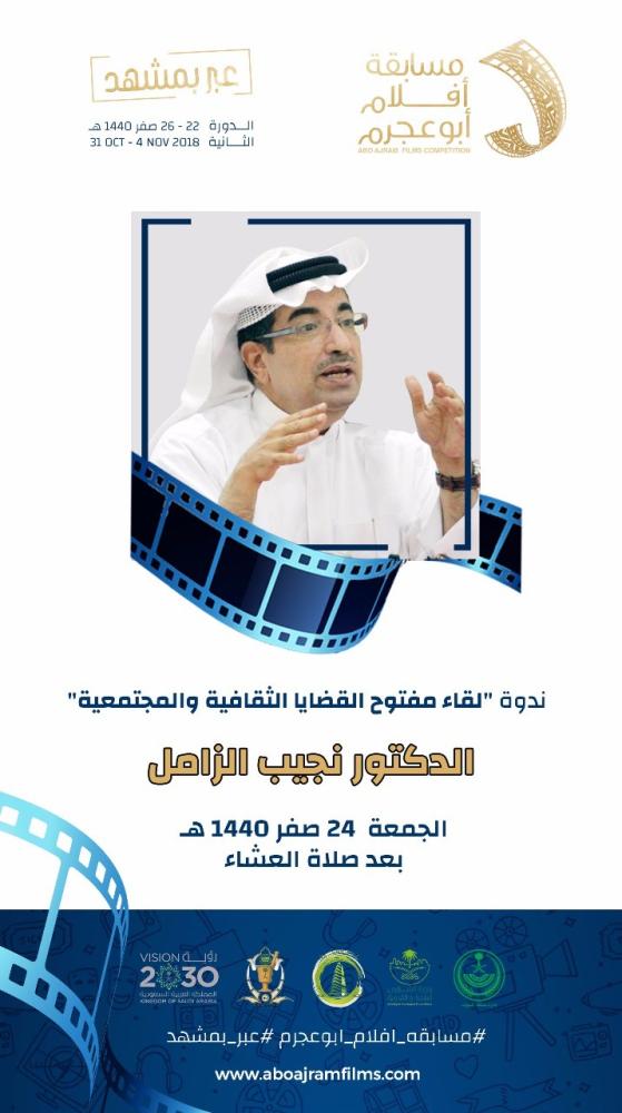أعلنت مسابقة أفلام أبو عجرم في دورتها الثانية، عقد أمسيات ثقافية لعدد من الشخصيات البارزة لمفكرين سعوديين، ودعت كل المهتمين للحضور.